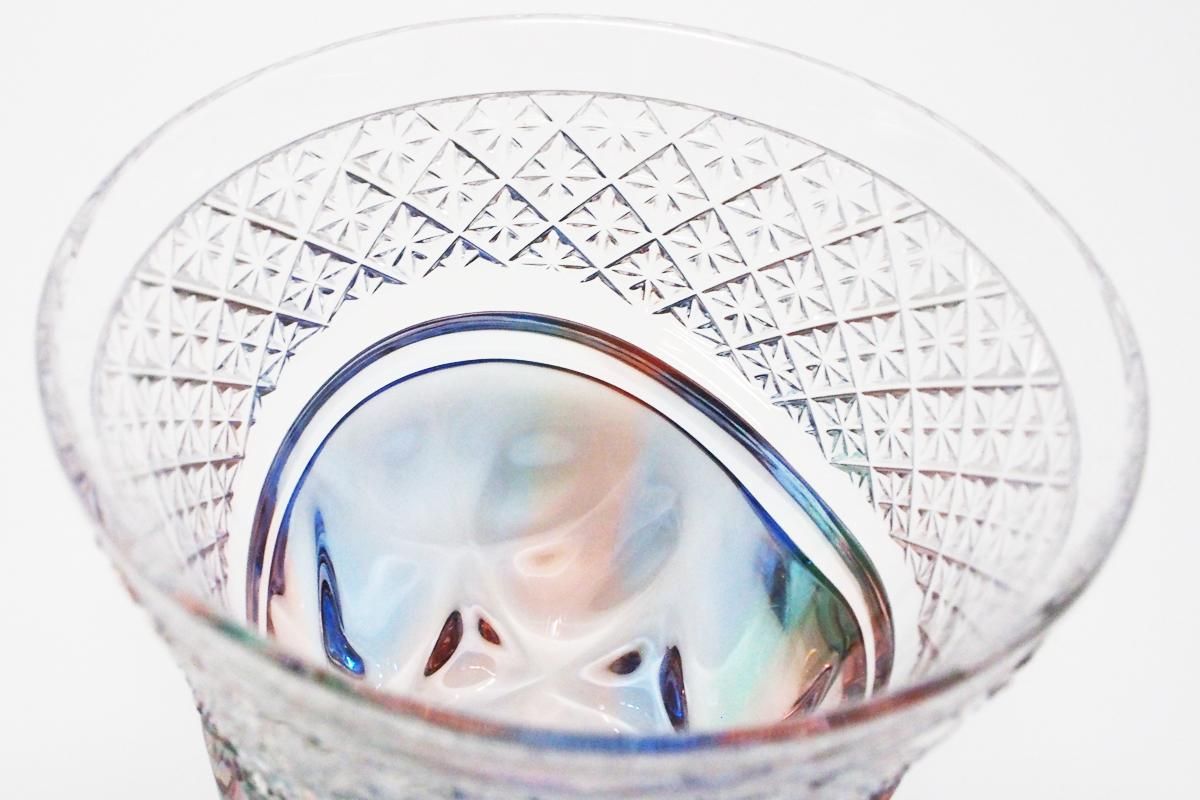 Please enjoy the beauty of glass that has two expressions, stillness and movement, as well as the appearance and texture that are different from those of ordinary works of the Edo-Kiriko.
